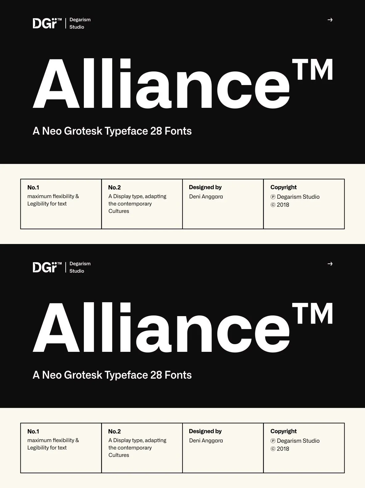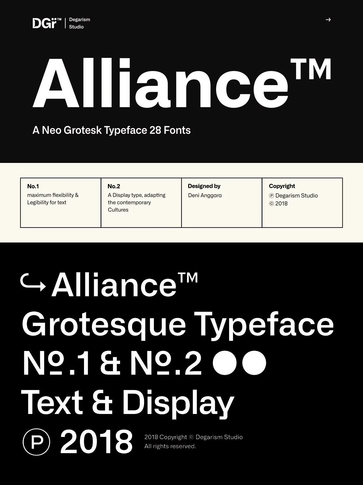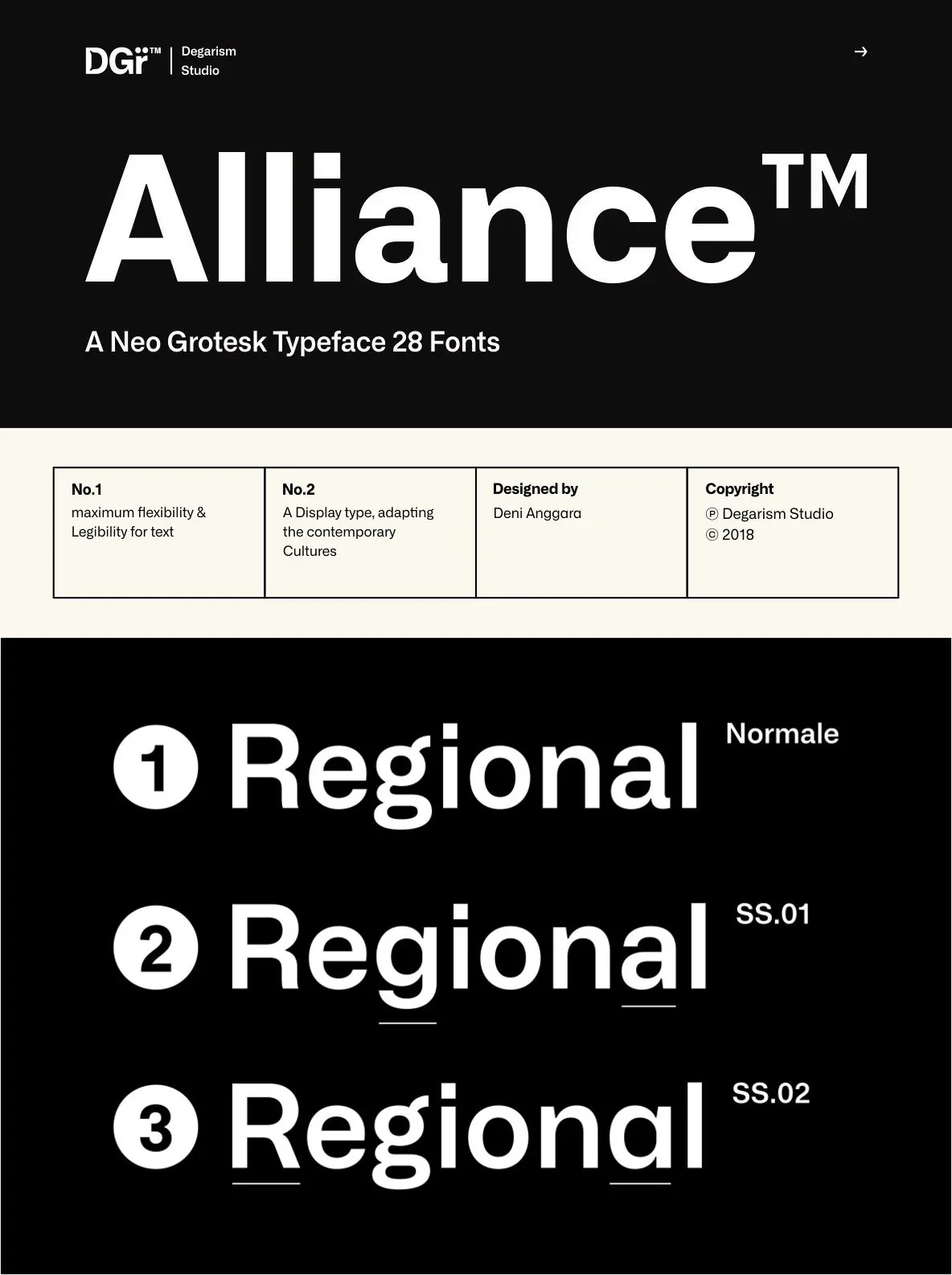 With over 592 glyphs per style, Alliance ensures robust Western, Central, and Eastern European language support. The thoughtful design supports both nuanced display work and demanding text applications. Alliance No.2, designed with display use in mind, emphasizes the interplay of contrasting shapes, making it particularly effective at large sizes and in settings where strong visual presence is essential.