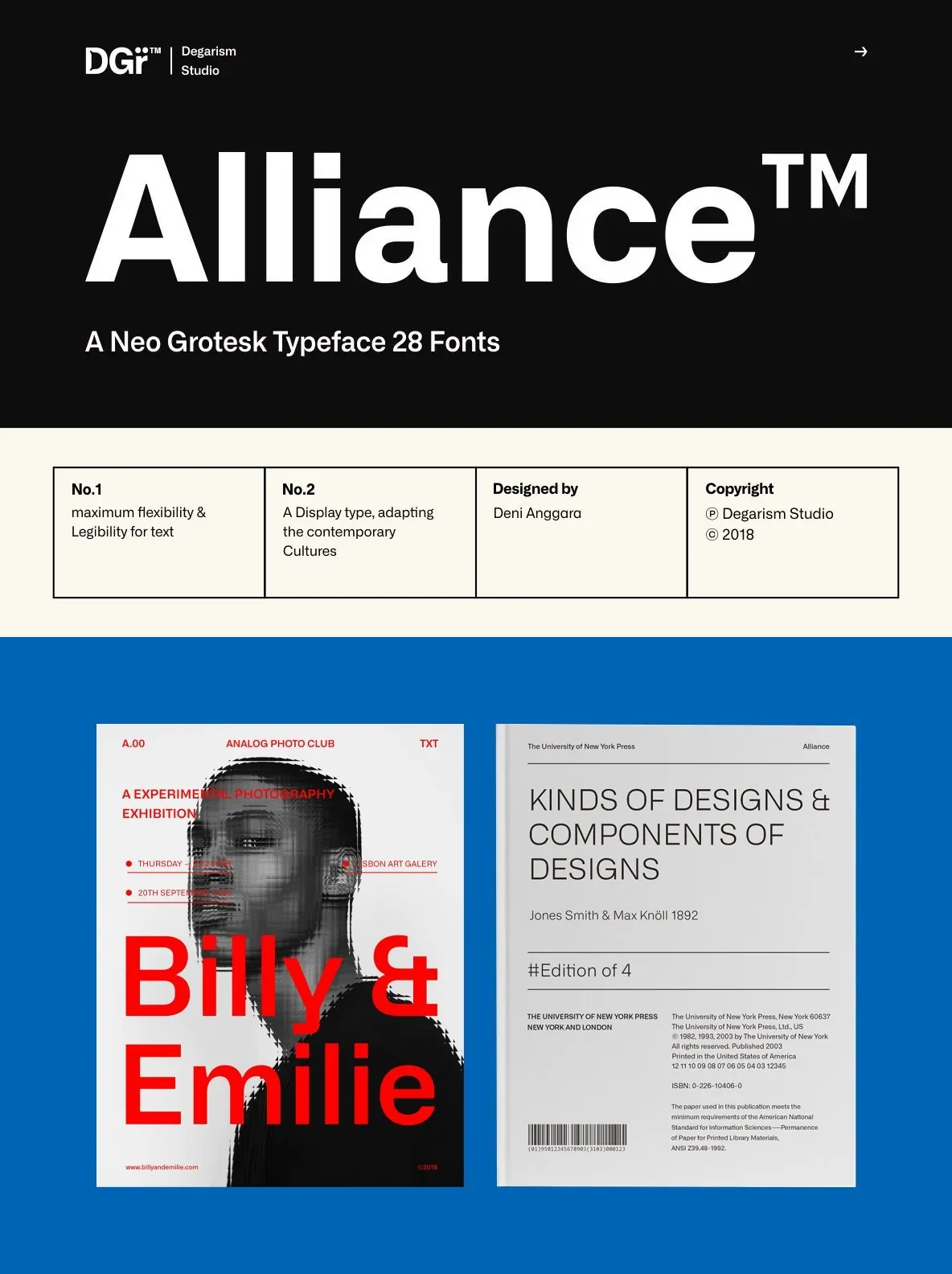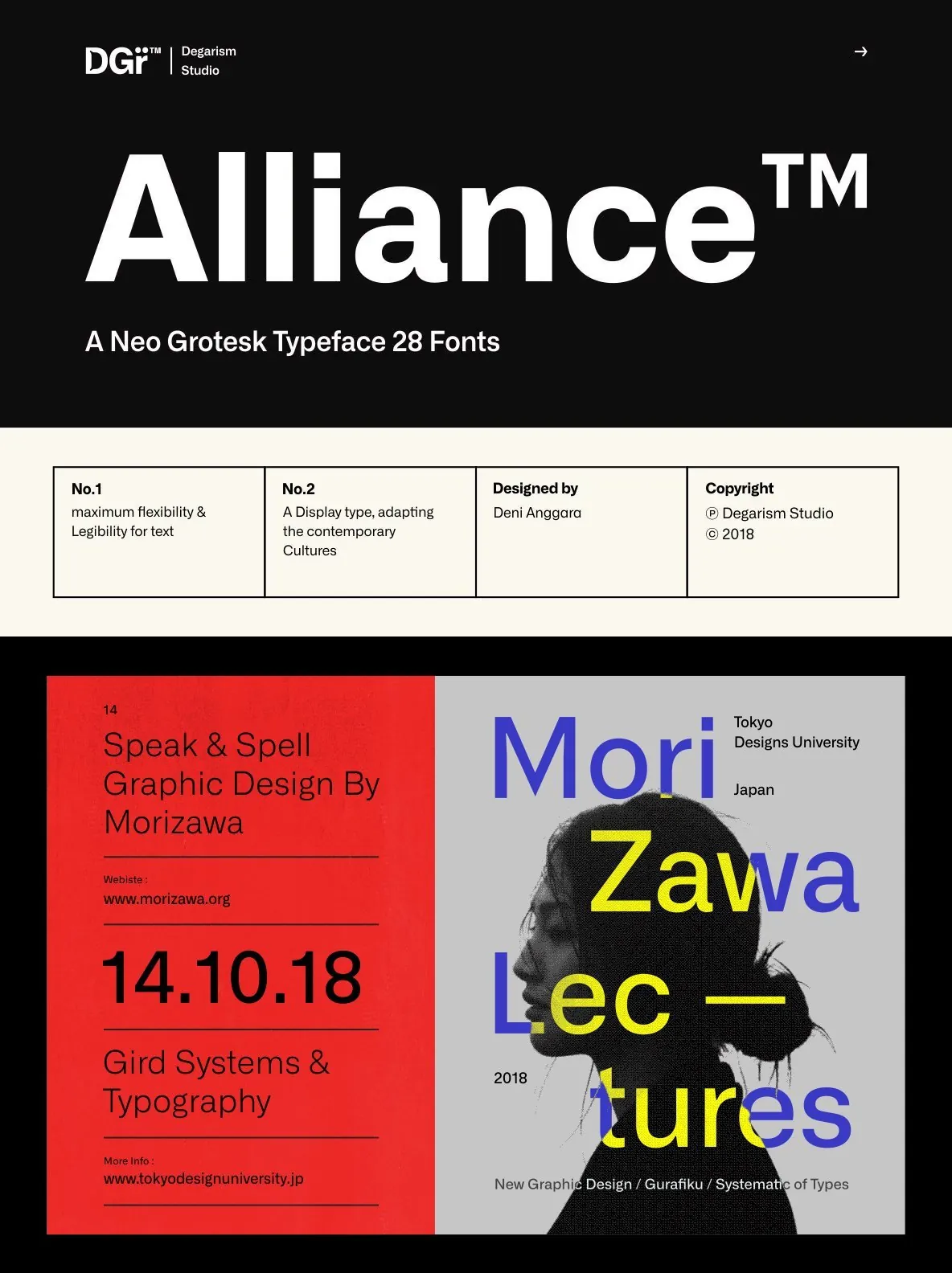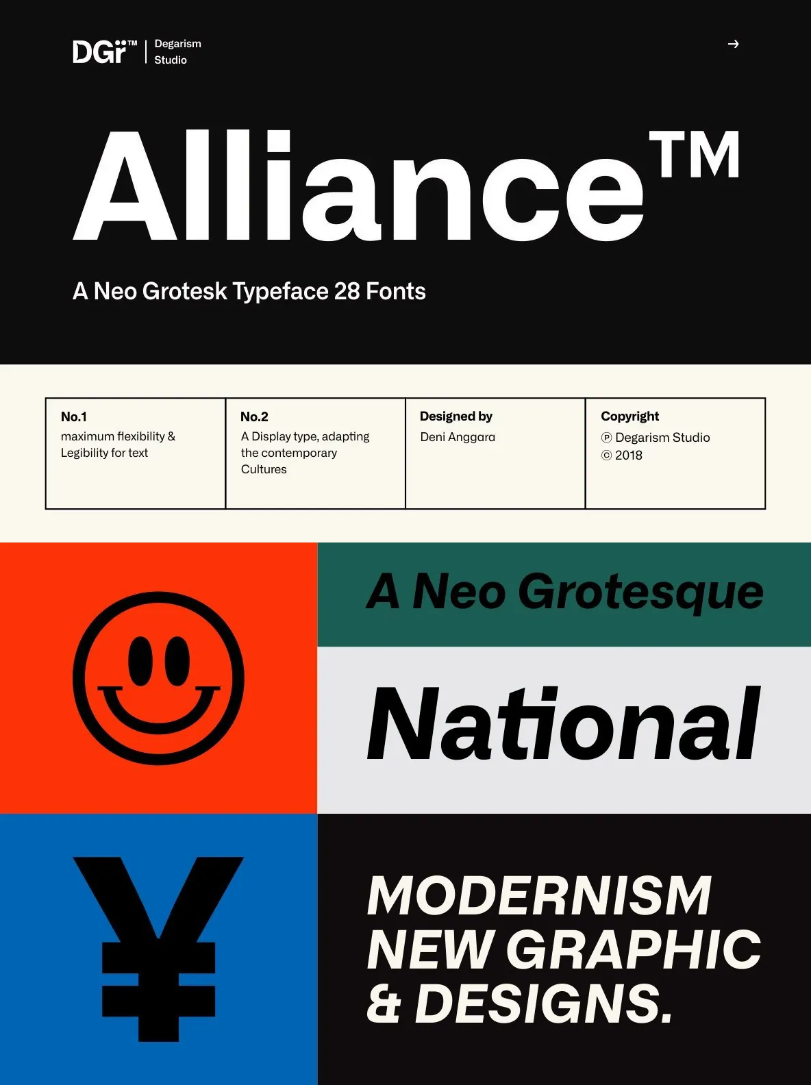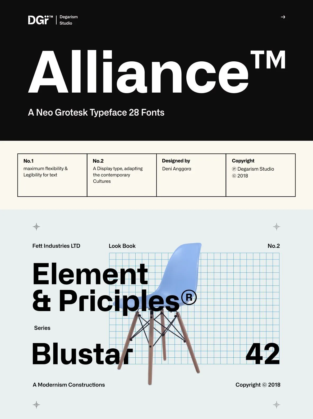 With over 592 glyphs per style, Alliance ensures robust Western, Central, and Eastern European language support. The thoughtful design supports both nuanced display work and demanding text applications. Alliance No.2, designed with display use in mind, emphasizes the interplay of contrasting shapes, making it particularly effective at large sizes and in settings where strong visual presence is essential.
