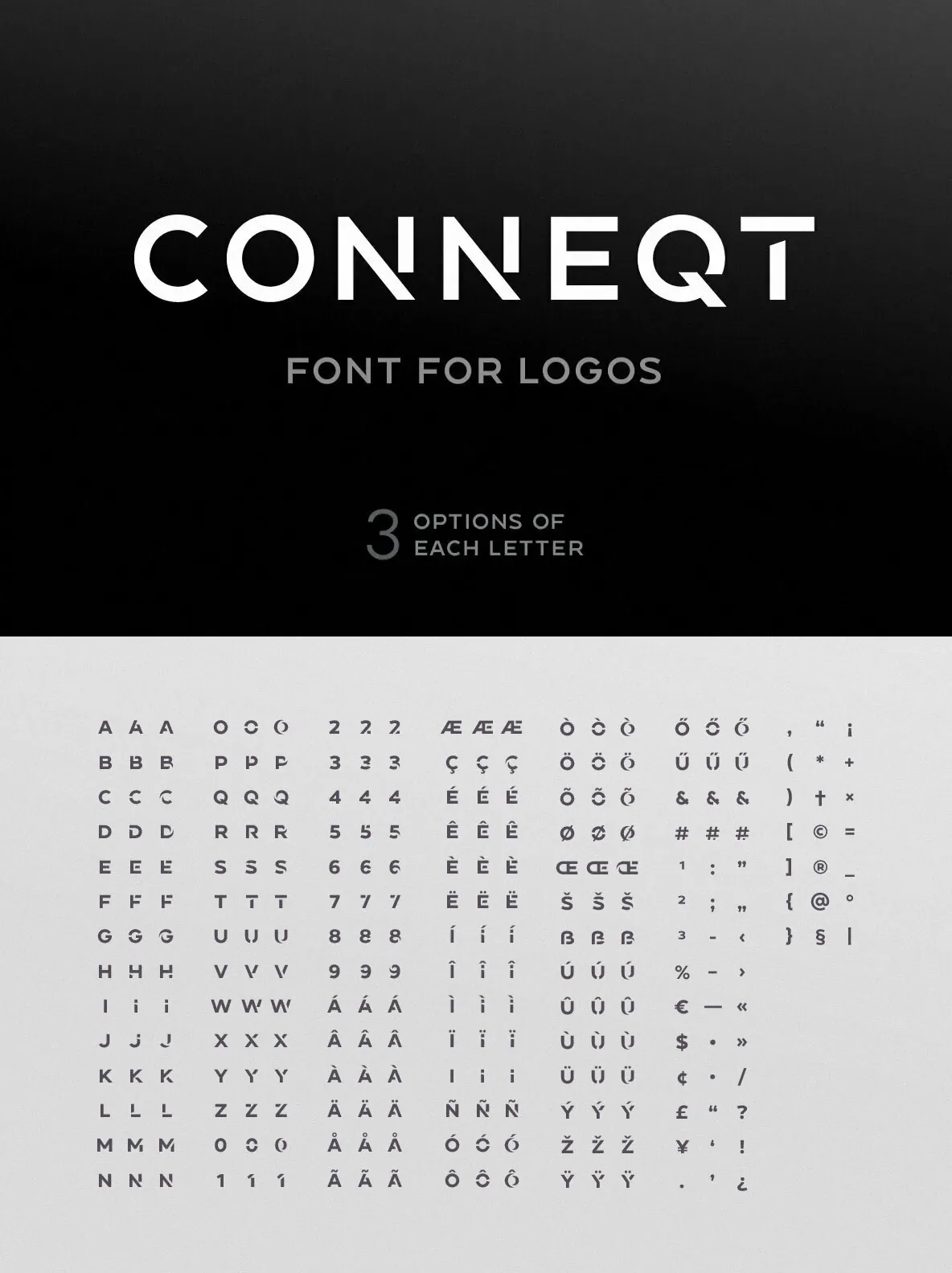 Conneqt is a skillfully crafted sans serif font that offers a synthesis of clarity and style, brought to life by Roman Melikhov. Designed with meticulous attention to detail, this typeface is an ideal choice for those seeking a sleek and contemporary aesthetic in their design projects.