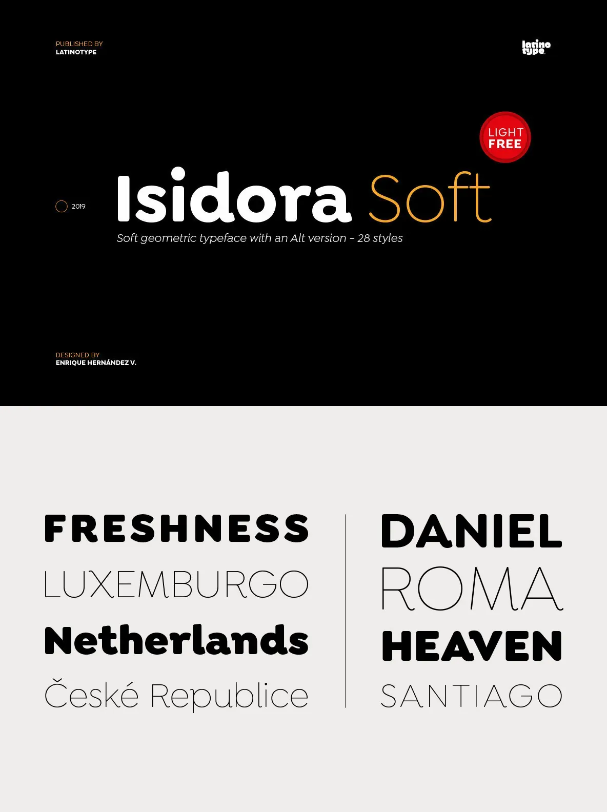 With its clean lines and expressive details, Isidora Soft offers reliable versatility for branding, packaging, and display use. Its blend of classic proportion and modern execution ensures strong readability without sacrificing character, supporting memorable visual identities across print and digital platforms.