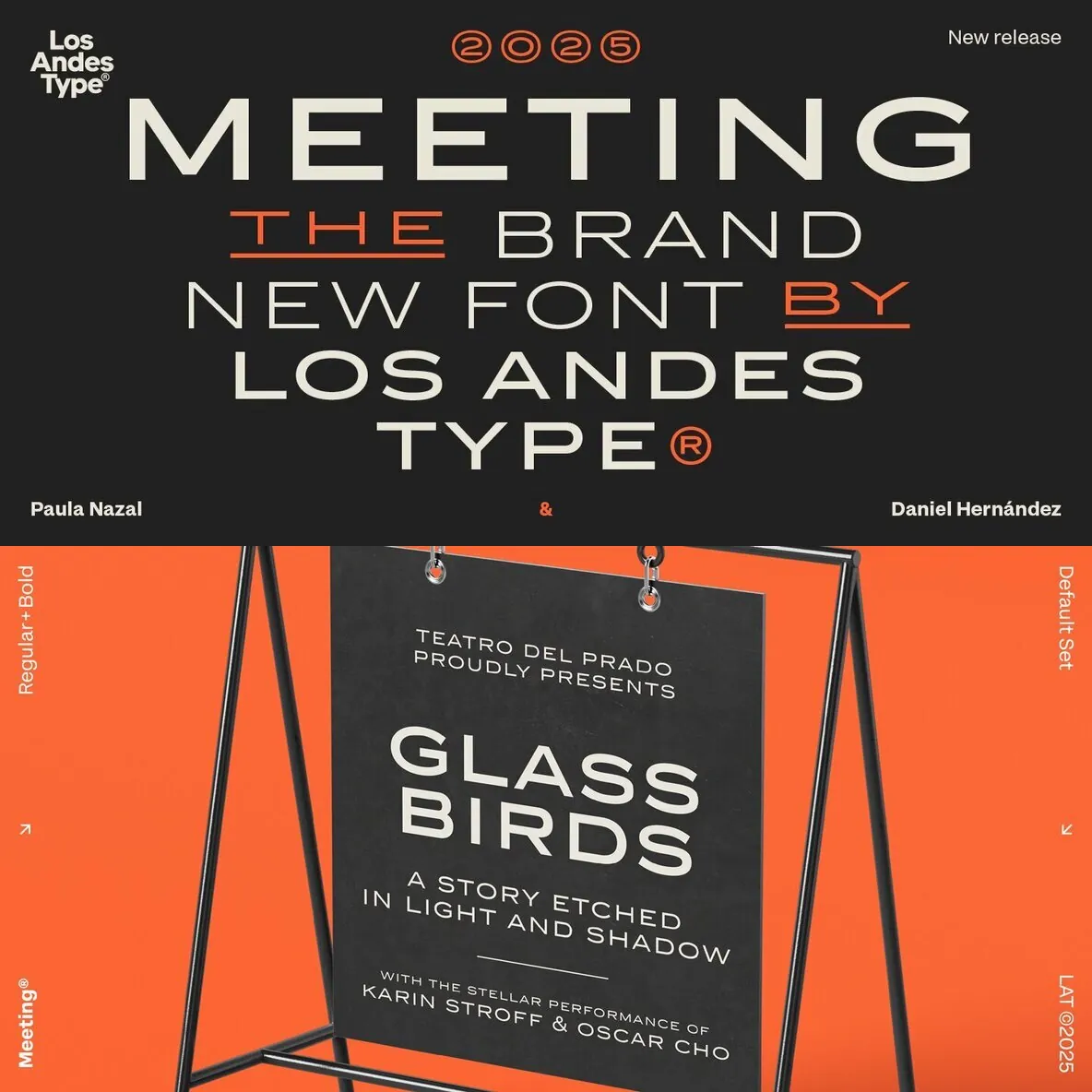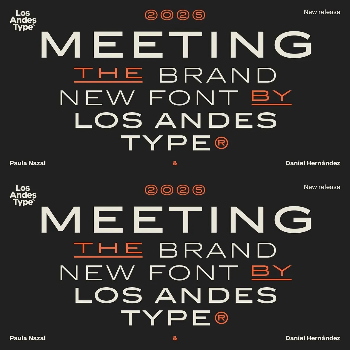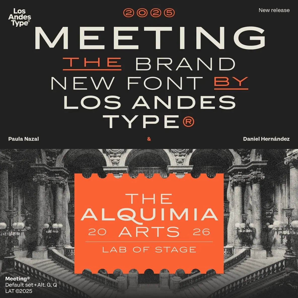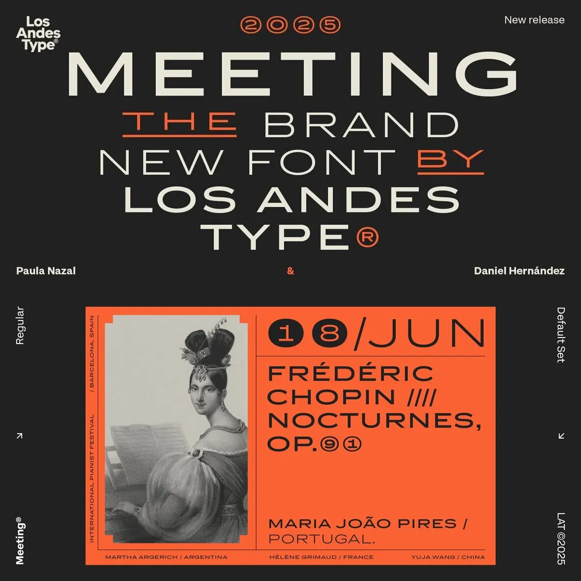 Designed by Los Andes Type, this family fits projects that demand character, from cocktail and coffee labels to festival posters. It also suits menus, music packaging, and handcrafted goods. Meeting balances the seriousness of a refined typeface with a subtle freshness, reminiscent of a well-balanced Negroni cocktail.