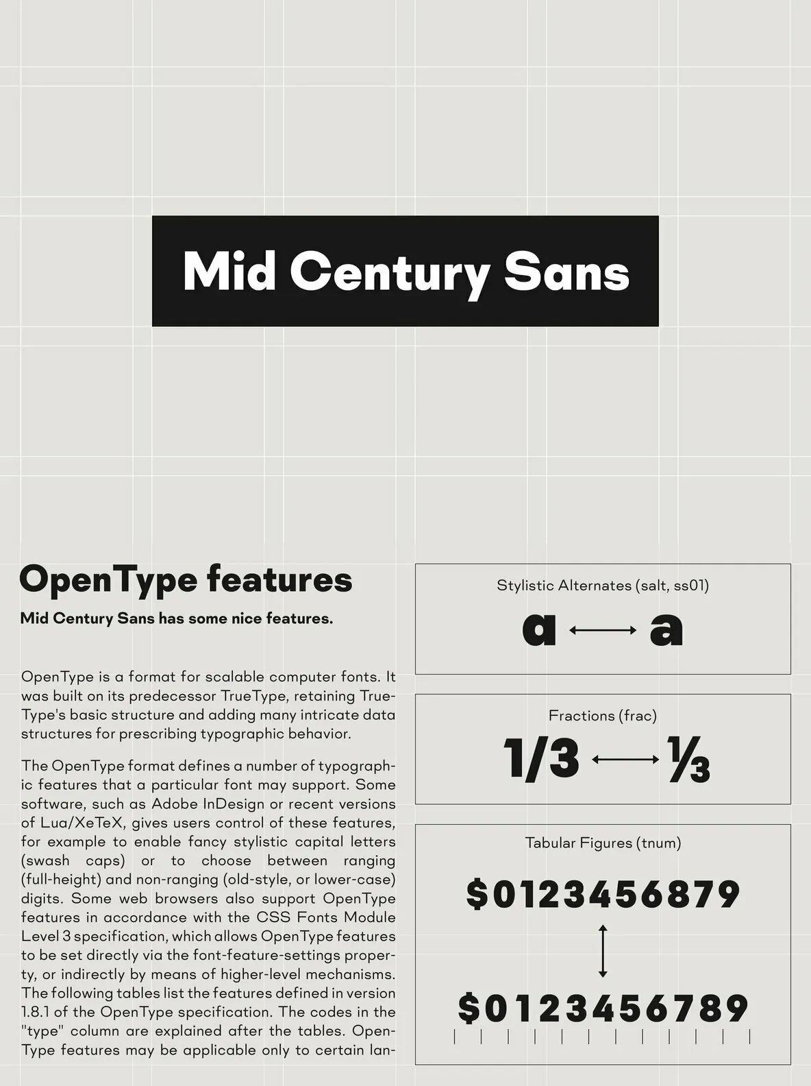 Mid Century Sans pairs functionality with a timeless aesthetic. With its straightforward geometry and modern appeal, it becomes a reliable choice for designers seeking a recognizable and impactful typeface.