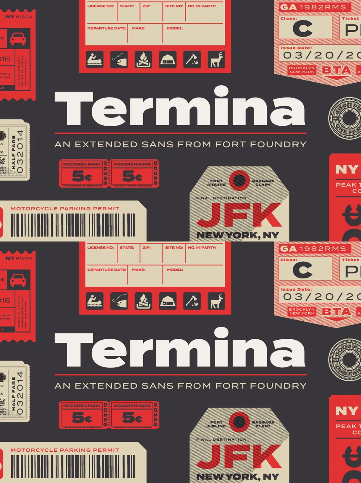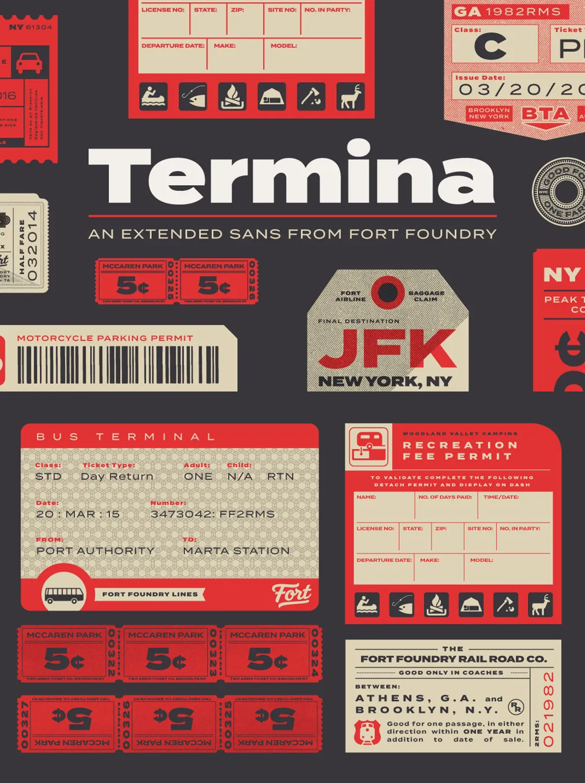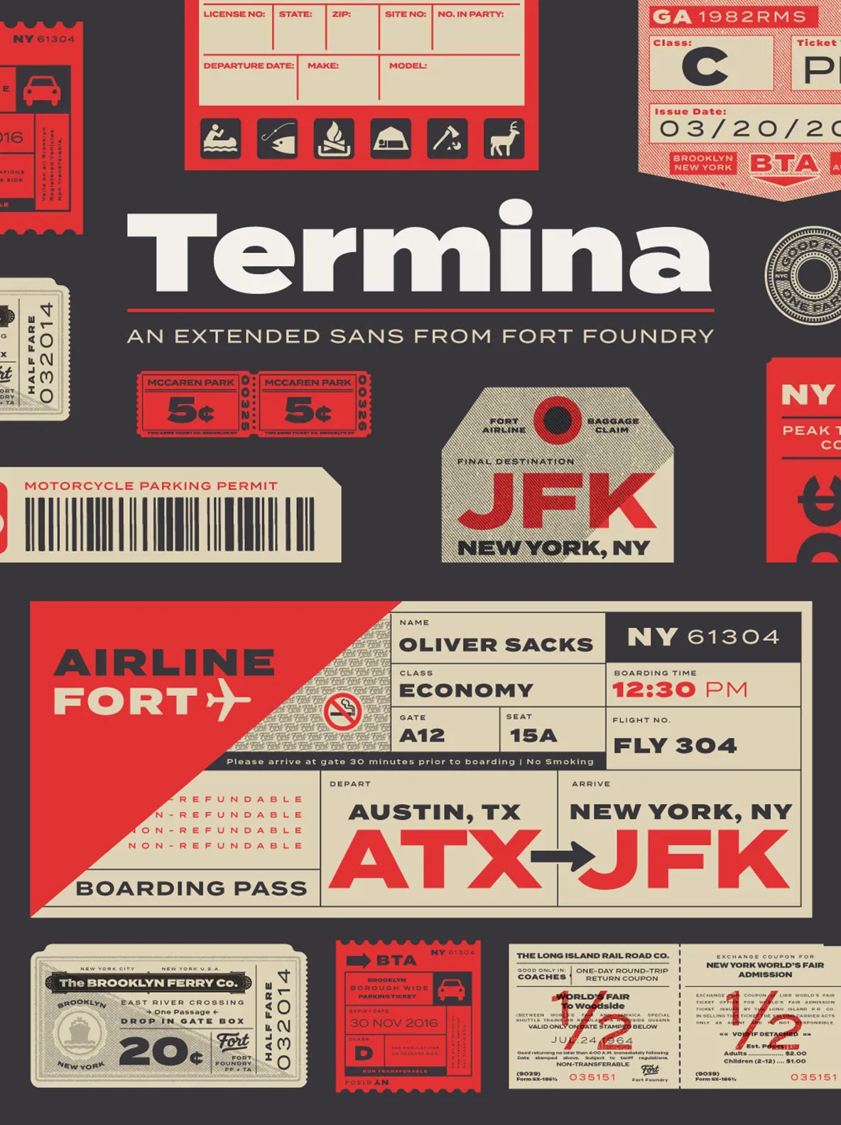 The various uses can range from advertising to logotype—from small descriptors to pull quotes. The family’s high x-height and wide letterforms help retain legibility and readability at smaller sizes. Opentype features include Stylistic Alternates, Small Capitals, Old Style Figures, Case-Sensitive Forms, and more. Clocking in at 743 glyphs, Termina includes a wide array of features and language support.