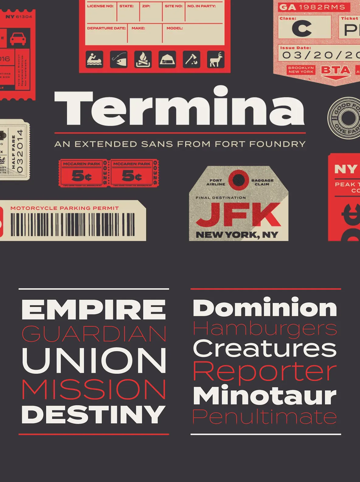 Amongst the landscape of geometrics, Termina breaks the norm with its generously wide letterforms. The typeface was conceived after finding and examining specimens for Industria, a family designed by Hermann Zehnpfundt in the early nineteen-hundreds for Emil Gursch.
